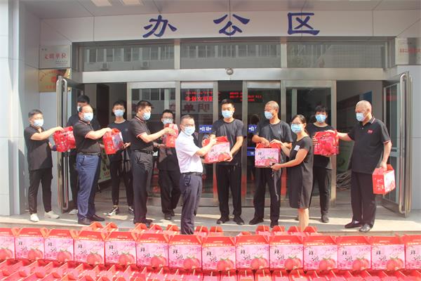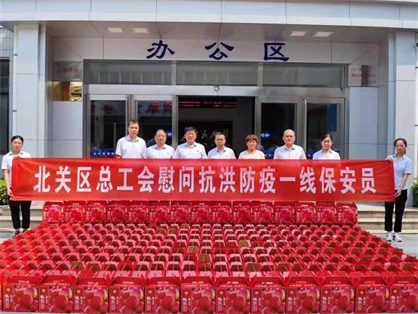8月9日、10日北關(guān)區(qū)總工會副主席薛梅、保障部部長司尚雯來到公司,送來抗洪防疫慰問品鮮桃500多箱,向堅守崗位、奮戰(zhàn)一線的保安隊員進(jìn)行慰問,提醒大家做好防控工作的同時一定要做好自身防護(hù)。