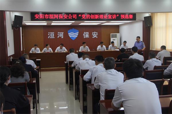 為深入學(xué)習(xí)貫徹習(xí)近平新時代中國特色社會主義思想和黨的十九大及歷次全會精神,推動黨的創(chuàng)新理論入腦入心,團結(jié)引領(lǐng)廣大職工堅定跟黨走、建功新時代,激勵全體洹河保安人以更加昂揚的精神狀態(tài)迎接黨的二十大勝利召開,2022年5月19日下午,公司黨委舉辦“黨的創(chuàng)新理論宣講”預(yù)選賽,黨委書記、董事長、總經(jīng)理王高峰,黨委委員、副總經(jīng)理魏東到會觀摩,比賽由黨委副書記張錫軍主持。