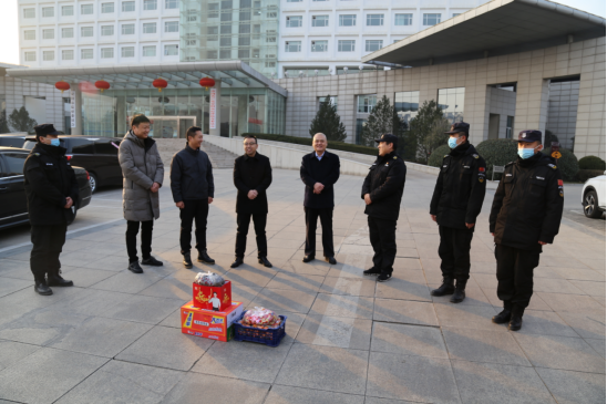 公司領(lǐng)導(dǎo)首先集體來到公司聯(lián)網(wǎng)報(bào)警指揮中心,給技防值守隊(duì)員拜年問好。