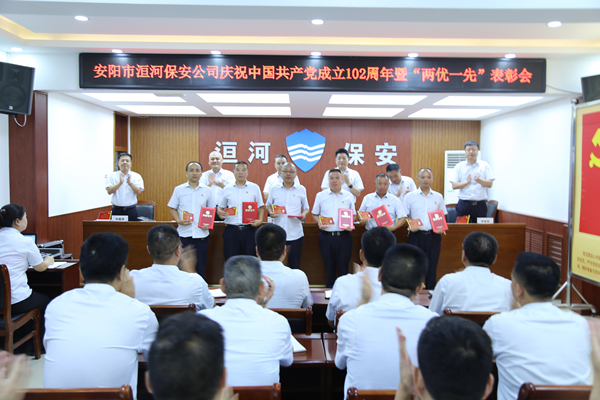 隨后,魏東同志宣讀《中共安陽市洹河保安服務有限責任公司委員會關于表彰2023年度優(yōu)秀共產黨員、優(yōu)秀黨務工作者、先進黨支部的決定》,《“學習二十大、筆墨頌黨恩”書法比賽獲獎名單》。黨委領導班子為優(yōu)秀共產黨員代表、優(yōu)秀黨務工作者代表、先進黨支部頒發(fā)了榮譽證書。