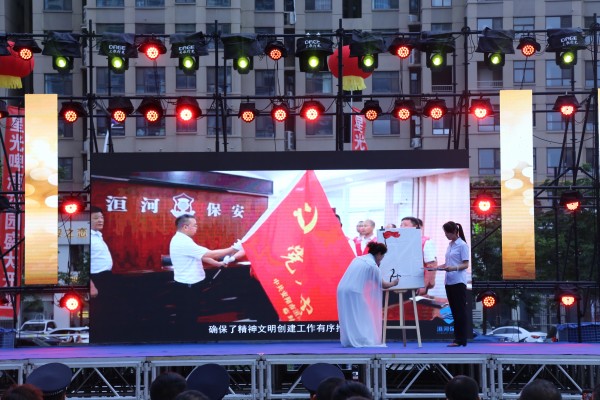 作為安陽市保安服務(wù)行業(yè)國有企業(yè)代表,公司承擔(dān)了保安風(fēng)采展示、表演環(huán)節(jié)中重要節(jié)目表演工作,包括詩朗誦、傳統(tǒng)武術(shù)、豫劇、表演等,以多種藝術(shù)形式進行了保安日宣傳。其中,由公司編排的詩朗誦《保安贊歌》作為開場節(jié)目,他們以鏗鏘有力的聲音展示了新時代保安員的風(fēng)采。隨后,公司職工又先后表演了中國傳統(tǒng)武術(shù)陳氏春秋大刀、太極功夫扇等。由公司特保大隊段志國等人帶來的節(jié)目《保安雄風(fēng)》把整場節(jié)目推向了高潮。此節(jié)目是公司特保大隊在應(yīng)急處突作戰(zhàn)中,反復(fù)研究、精心打磨的一套勤務(wù)動作,集實用性和震懾性為一體,隊員們穿戴全套裝備,士氣高昂,動作整齊劃一,一招一式盡顯扎實的基本功,得到領(lǐng)導(dǎo)們廣泛稱贊和肯定,也博得了場下觀眾如潮般的掌聲。