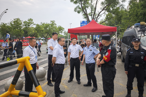 在考點(diǎn)執(zhí)勤現(xiàn)場(chǎng),王高峰和其他公司領(lǐng)導(dǎo)詳細(xì)詢問(wèn)了執(zhí)勤及安全保衛(wèi)工作部署情況,實(shí)地察看了考點(diǎn)的安全保衛(wèi)措施和情況,并代表公司黨委向堅(jiān)守崗位、忠實(shí)履職、積極為考生及家長(zhǎng)提供服務(wù)的一線執(zhí)勤保安員致以問(wèn)候,為他們送上綠茶等慰問(wèn)品。