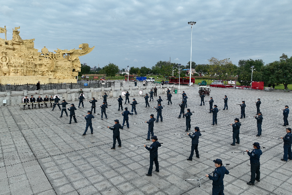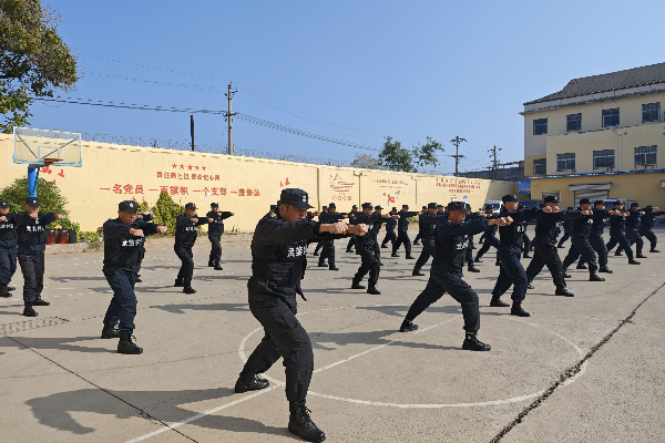 此次考核內(nèi)容為理論考試和實操技能考核。實操考核設(shè)置“隊列動作”“擒敵拳”“交通指揮”“鋼叉操”“匕首操”“校園保安勤務(wù)處置預(yù)案”“金融防搶預(yù)案”“車輛爆胎應(yīng)急預(yù)案”“槍支拆裝”九個項目。