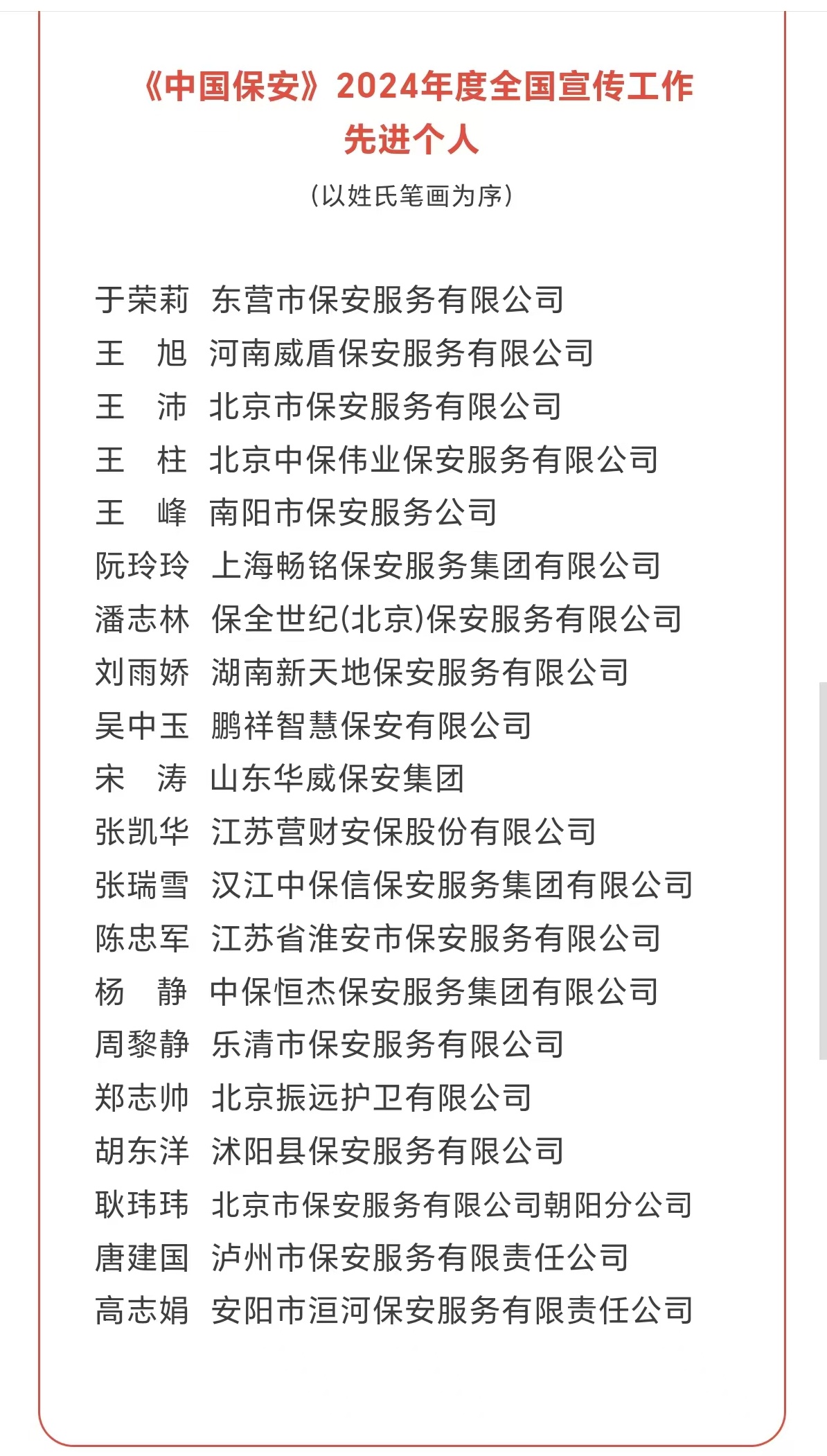 3月5日,《中國保安》雜志2024年度全國宣傳工作優(yōu)秀組織獎、優(yōu)秀撰稿人、先進集體、先進個人評選揭曉,公司綜合辦公室高志娟同志喜獲“全國宣傳工作先進個人”榮譽。