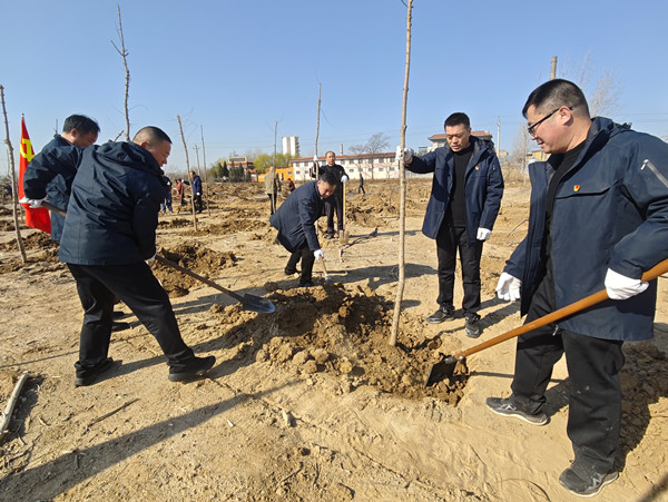 春風(fēng)拂面催新綠,黨旗飄揚(yáng)踐初心。為全面貫徹落實(shí)黨的二十屆三中全會(huì)精神,踐行習(xí)近平生態(tài)文明思想,牢固樹立“綠水青山就是金山銀山”理念,3月18日上午,公司黨委領(lǐng)導(dǎo)班子帶領(lǐng)50余名黨員干部開展“植樹添新綠、黨旗映初心”主題黨日活動(dòng)。
