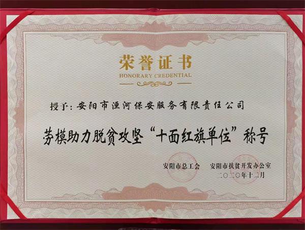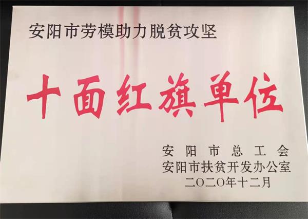 公司榮獲安陽市勞模助力脫貧攻堅(jiān)“十面紅旗單位”榮譽(yù)稱號(hào)