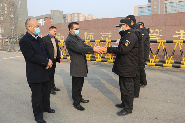 隨后,公司領(lǐng)導(dǎo)分成三組先后到人防安陽幼師、龍安區(qū)政府崗點,守押六大隊、守押十大隊駐地,特保大隊開發(fā)區(qū)巡防駐地、中國文字博物館崗點,鼎誠物業(yè)海興御花園、交警支隊項目部,藍盾駕校、鼎信公司,對堅守在工作崗位的員工進行了慰問。