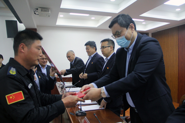 頒獎儀式后,經(jīng)濟責(zé)任目標(biāo)部門負責(zé)人向公司黨委書記、董事長、總經(jīng)理王高峰依次遞交2021年經(jīng)濟責(zé)任目標(biāo)書。
