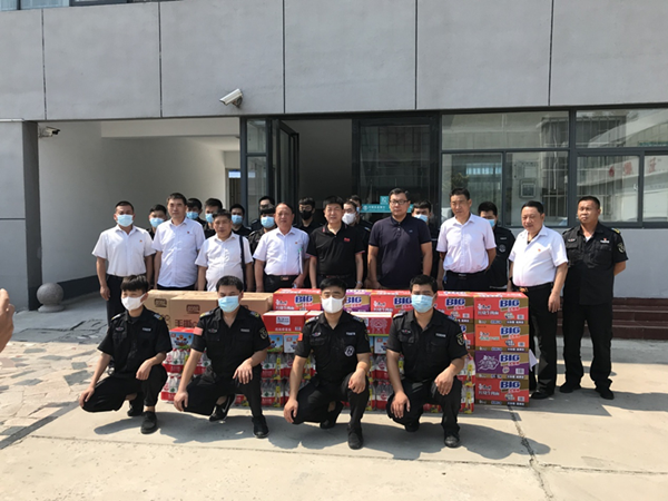 2021年8月3日早上,公司領導張錫軍、岳子迪、高代獻、楊克忠、張合印、劉東杰等走訪慰問守押九大隊全體干部職工,并送來了方便面、火腿腸、面包、榨菜、礦泉水等物資,并向大家致以誠摯的問候,對在一線隊員表示慰問,對守押九大隊積極應對特大暴雨的部署和行動表示肯定,詳細了解大隊的防汛搶險和一線隊員生活保障情況,叮囑隊員在確保自身安全的前提下,秉承生命至上的宗旨,壓實責任,堅持值守,繼續(xù)發(fā)揚不怕吃苦,艱苦奮斗,勇于擔當?shù)木?,做好防汛工作,隱患排查整改工作,確保槍支彈藥、車輛、金庫的安全。