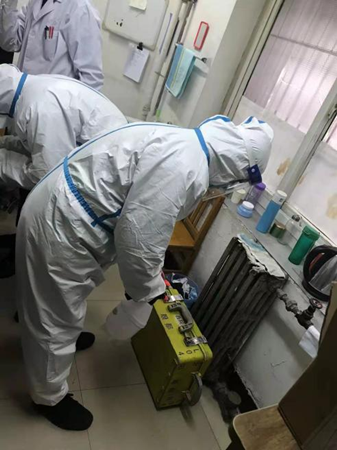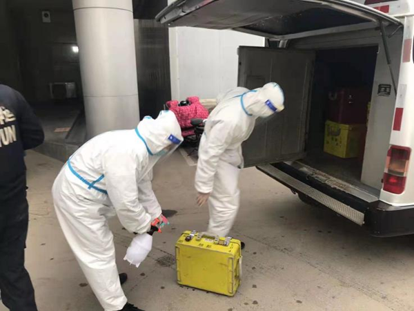 演練中,大隊模擬接到中國銀行通知,需要到人民醫(yī)院接收錢款勤務(wù)。大隊出勤人員首先進(jìn)行消毒穿戴防護(hù)服,完成消毒程序后車輛出車,到達(dá)人民醫(yī)院和銀行工作人員嚴(yán)格按照消毒程序?qū)钕溥M(jìn)行交接,隨后將款箱押至規(guī)定地點,車輛回隊后再按照程序進(jìn)行消毒交接。