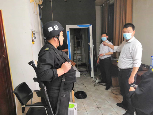 在改造過程中,大隊長楊中朝多次召開守庫工作例會,要求林州農(nóng)商銀行金庫隊員做好金庫施工中的安全工作。在施工中,大隊安排專人專門負責(zé)協(xié)調(diào)在金庫改造期間出現(xiàn)的施工問題,守庫員全副武裝做好金庫的安全警戒工作。