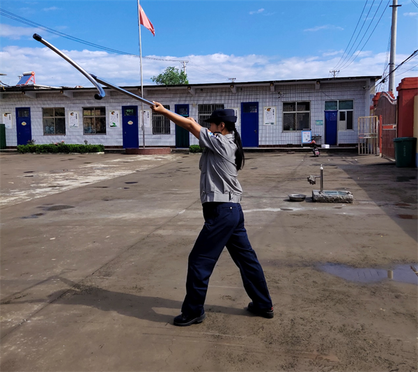 校園保安是維護(hù)校園安全的一道重要防線,也是家長(zhǎng)和孩子們溫暖的依靠。人防三大隊(duì)都里鎮(zhèn)李珍班隊(duì)員全部是女子隊(duì)員,為克服新上崗女隊(duì)員心理上的畏難情緒,都里鎮(zhèn)保安隊(duì)李珍班制作了訓(xùn)練慢視頻,共同學(xué)習(xí),一起進(jìn)步!同時(shí),大家相互打氣、鼓勵(lì),切磋技藝。在訓(xùn)練過(guò)程中,隊(duì)員們按照鋼叉操動(dòng)作逐項(xiàng)進(jìn)行規(guī)范,把鋼叉操的要領(lǐng)牢記在心。