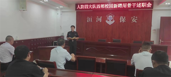 9月3日上午,人防四大隊(duì)西部校園新聘用骨干述職會在公司南二樓會議室召開,人防四大隊(duì)大隊(duì)長陳志軍、副大隊(duì)長李領(lǐng)軍參加述職活動并擔(dān)任評委,西部校園12名代理班長進(jìn)行述職匯報(bào)。