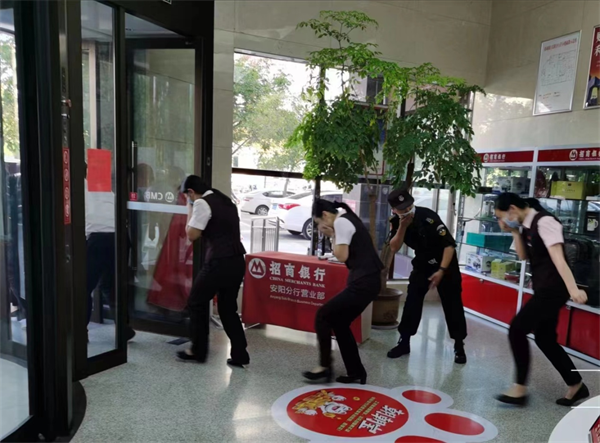 為進一步強化“國慶”、“二十大”期間金融部門銀行業(yè)對外營業(yè)安全及應(yīng)對突發(fā)事件能力,10月3日下午,招商銀行聯(lián)合特保大隊駐招商銀行特保班進行了消防應(yīng)急預(yù)案演練,特保班長王瑜負責組織指揮,特保隊員分工明確行動迅速、妥善處理險情,受到銀行保衛(wèi)部經(jīng)理王瀟曉的好評。