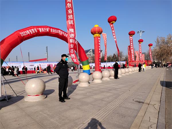 1月9日,2023年安陽市“春風行動”啟動儀式暨安陽縣就業(yè)援助招聘會在東區(qū)禮湖公園拉開帷幕,人防五大隊承擔了本次安保任務(wù)。
