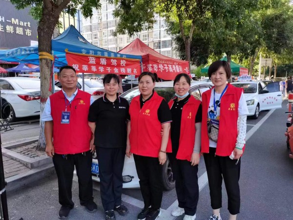 其次,全員上陣,高考考場全包圍。6月7日、8日高考期間,學校全體職工按照分工安排,奔赴各考點,全力做好招生宣傳工作。早上5、6點鐘,職工們就趕到自己的宣傳點進行場地布置等準備工作,學生進入考場后,主動向?qū)W生家長介紹學校,讓學生家長了解學車考證的知識及藍盾能夠為學車考證提供的服務和保障。職工劉海棠自己出資購買50件水,供考生、學員家長使用;職工張小偉在高考宣傳中撿到一張學生身份證,通過發(fā)朋友圈、聯(lián)系110等最終將身份證交還丟失者;職工徐子亮自己從家里拿來遮陽棚,供高考招生宣傳組使用。兩天的宣傳,職工們與數(shù)百名家長達成初步學車意向,職工們也將進一步跟蹤學生家長,努力做到讓他們的孩子到藍盾學車考證。