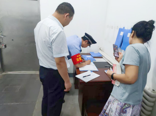 9月27日,北辰分局社區(qū)治安民警趙鵬霞到守押六大隊(duì)檢查槍彈安全工作。大隊(duì)長殷成軍陪同檢查,中隊(duì)長袁鵬超現(xiàn)場匯報。