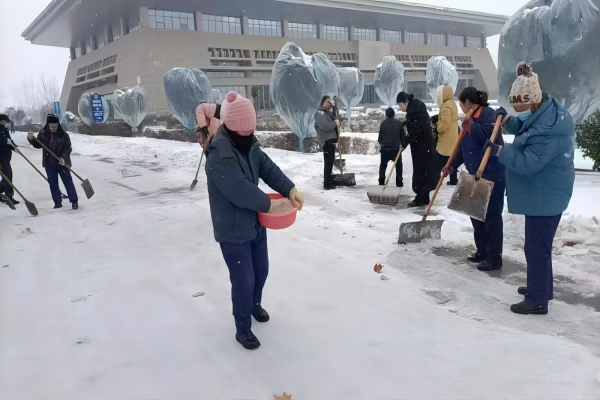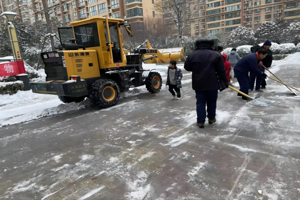 除雪行動中,鼎誠物業(yè)合理調(diào)配人員、機(jī)械,采取人機(jī)相結(jié)合的方式,分工明確,分片負(fù)責(zé),劃區(qū)作戰(zhàn),先清后鏟,隨降隨清,隨清隨運(yùn)。大家齊心協(xié)力,團(tuán)結(jié)協(xié)作,對各項(xiàng)目小區(qū)主干道、停車場道路出口、臺階等部位進(jìn)行清掃。