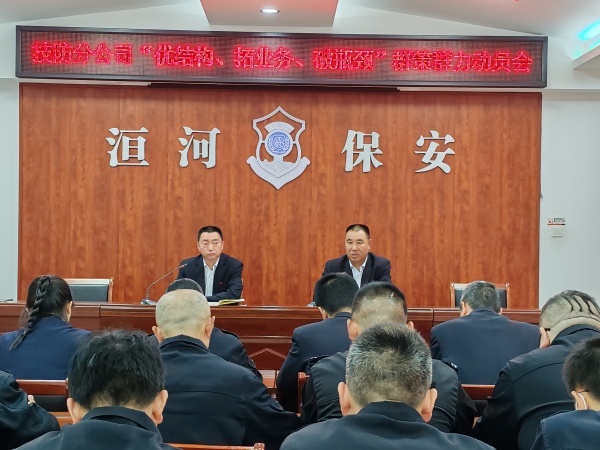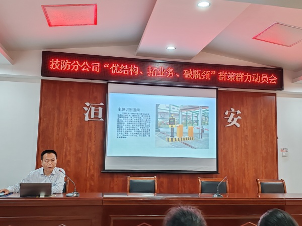 為認(rèn)真落實(shí)公司“優(yōu)結(jié)構(gòu)、拓業(yè)務(wù)、破瓶頸”活動(dòng),營(yíng)造干事創(chuàng)業(yè)的濃厚氛圍,進(jìn)一步推動(dòng)技防分公司發(fā)展提質(zhì)增效,4月20日上午9:00,技防分公司在公司南二樓會(huì)議室召開(kāi)“優(yōu)結(jié)構(gòu)、拓業(yè)務(wù)、破瓶頸”群策群力動(dòng)員會(huì)。分公司班長(zhǎng)、中隊(duì)長(zhǎng)及骨干人員共30余人參加了會(huì)議。會(huì)議由技防黨支部書(shū)記侯永杰主持。