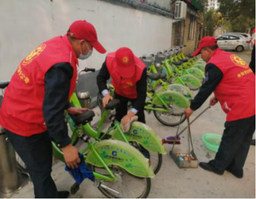 大家手拿抹布,提著水桶,對每部單車進(jìn)行仔細(xì)清潔,不留下一處衛(wèi)生死角。經(jīng)過1個(gè)小時(shí)的忙碌,現(xiàn)場單車煥然一新、干凈整潔。