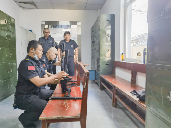 因近期大隊(duì)勤務(wù)繁重,為了在有限的時(shí)間內(nèi)完成訓(xùn)練進(jìn)度,大隊(duì)領(lǐng)導(dǎo)合理規(guī)劃時(shí)間,平時(shí)組織各車組利用工余時(shí)間分別開展訓(xùn)練;周六、周日集中開展擒敵拳及槍支拆解等科目的訓(xùn)練。