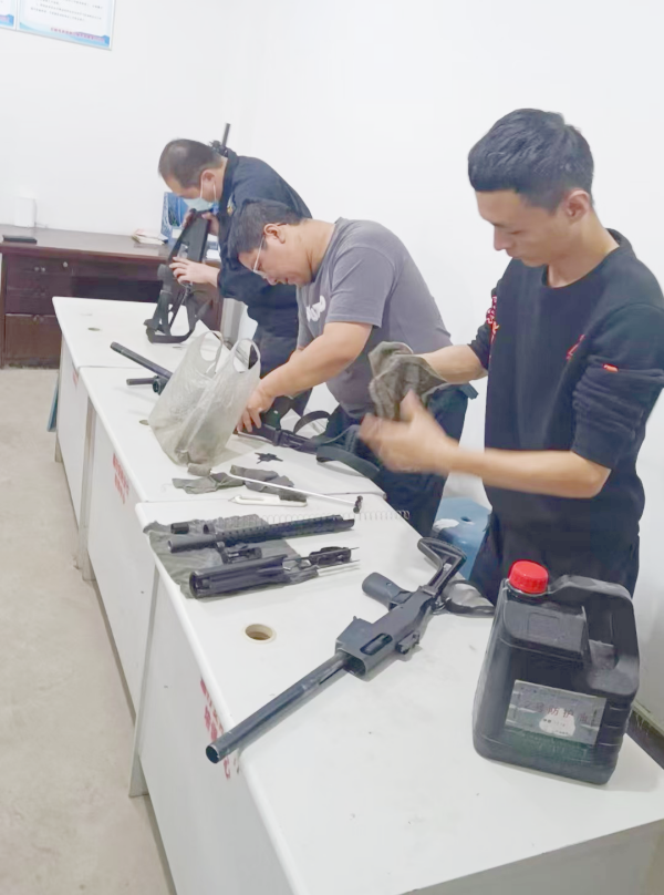 為確保大隊(duì)槍支彈藥安全,提升押運(yùn)人員安全用槍意識,更好地開展各項(xiàng)工作,10月11日下午,守押五大隊(duì)組織押運(yùn)人員對大隊(duì)槍支進(jìn)行全面細(xì)致地維護(hù)保養(yǎng)。