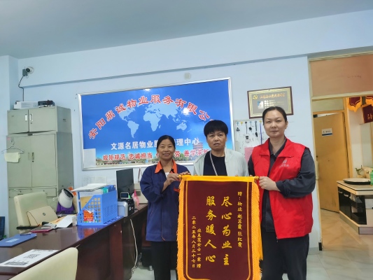 接到求助后,保潔人員詳細(xì)記錄了衣物的特征、晾曬時(shí)間及發(fā)現(xiàn)丟失的時(shí)間,并第一時(shí)間在可能掉落的區(qū)域展開細(xì)致查找。經(jīng)過多方努力,最終在10號樓南側(cè)的綠化帶中找到了業(yè)主丟失的衣物,并及時(shí)歸還。業(yè)主對物業(yè)高效、負(fù)責(zé)的工作態(tài)度表示高度認(rèn)可,特意制作了一面寫有“盡心為業(yè)主 服務(wù)暖人心”的錦旗贈(zèng)予物業(yè)服務(wù)中心,以表達(dá)誠摯感謝。