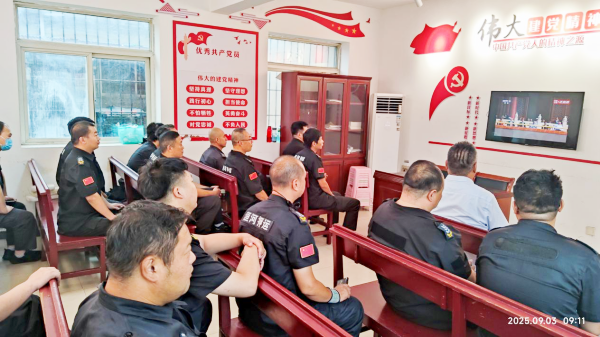 為慶祝抗戰(zhàn)勝利80周年,9月3日上午,守押一大隊(duì)精心組織全體隊(duì)員集中觀看閱兵直播。