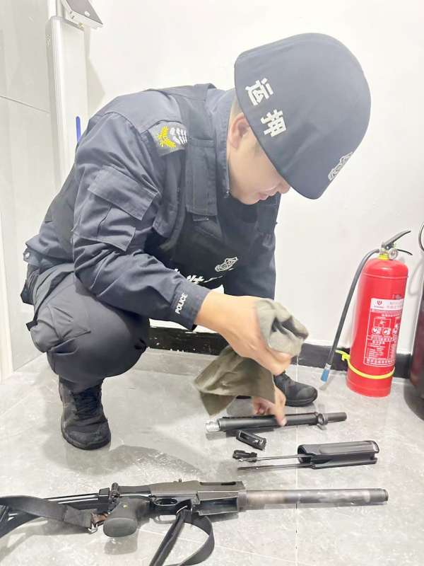 保養(yǎng)過程中,押運員嚴格對標《槍支管理規(guī)定》要求,全程遵循“分解徹底、清潔到位、潤滑均勻、調試精準”原則,逐一拆解槍支,細致清除部件縫隙內的灰塵與濕氣,涂抹專用潤滑劑,同時還重點檢查了擊發(fā)裝置靈敏度、槍管內壁光潔度、彈匣供彈流暢性等核心指標。