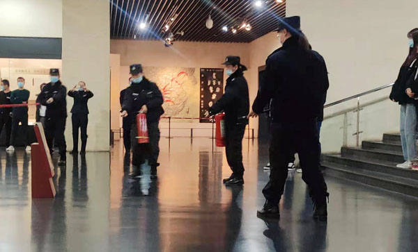 12月18日上午8點(diǎn)30分,特保大隊(duì)派駐中國(guó)文字博物館中隊(duì)按照客戶年末冬季消防防控要求,結(jié)合公司《冬春季火災(zāi)防控實(shí)施方案》活動(dòng)內(nèi)容,進(jìn)行了消防演練。客戶安保部主任孫琳杰和全館工作人員觀摩??蛻舫浞挚隙岁?duì)員的消防技能。特保大隊(duì)隊(duì)長(zhǎng)李樞林指導(dǎo)此次演練。