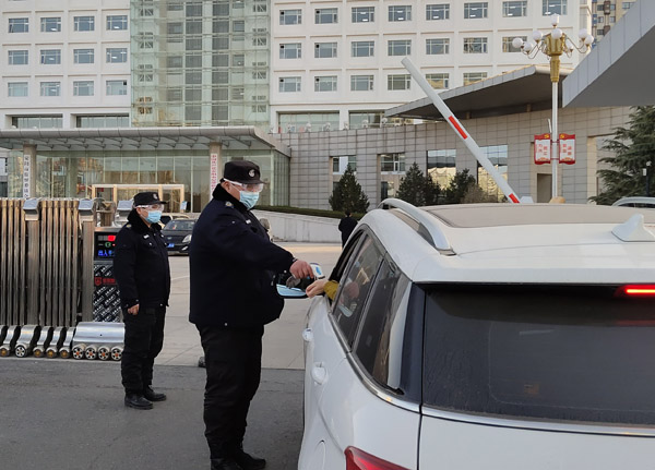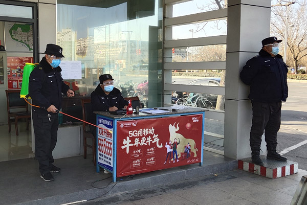 目前,中隊(duì)全體隊(duì)員表示,要以飽滿的工作熱情積極工作,保障客戶安全,為客戶度過一個(gè)平安祥和的春節(jié)做出自己的貢獻(xiàn)。圖為隊(duì)員在學(xué)習(xí)疫情防控知識(shí)、對(duì)崗點(diǎn)進(jìn)行消殺、測(cè)量外來人員體溫。