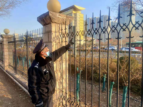 牛年春節(jié)臨近,為度過(guò)一個(gè)安寧祥和的新春佳節(jié),人防二大隊(duì)提前安排布局,做了周密的準(zhǔn)備工作。近一周來(lái),該大隊(duì)主管隊(duì)伍管理和崗點(diǎn)建設(shè)的干部,深入基層崗點(diǎn)查崗查哨,了解隊(duì)伍思想動(dòng)態(tài),就進(jìn)行節(jié)前安全隱患大排查提出具體要求,叮囑隊(duì)員站在講政治的高度,堅(jiān)守崗位,認(rèn)真履行職責(zé),把各項(xiàng)安全措施落到實(shí)處。守土有責(zé),守土盡責(zé),嚴(yán)格執(zhí)行門衛(wèi)管理制度,搞好消毒滅殺,講究個(gè)人衛(wèi)生,切實(shí)做好疫情防控工作,確保不發(fā)生任何安全責(zé)任事故和疫情防控失職行為。圖為隊(duì)員在進(jìn)行安全隱患排查。