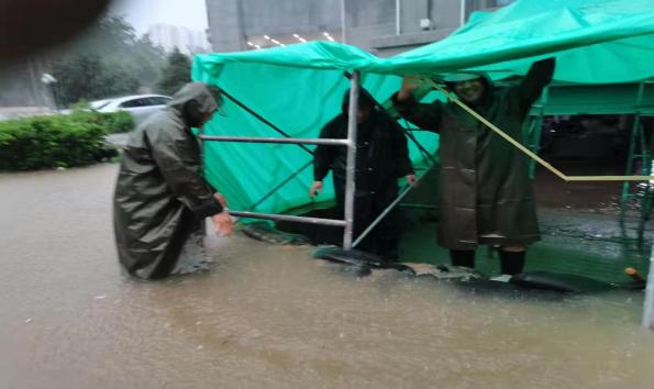 災(zāi)情就是命令,搶險(xiǎn)就是責(zé)任。駐安陽分行人防一大隊(duì)隊(duì)長翟根平同志第一時(shí)間啟動(dòng)應(yīng)急預(yù)案,立即安排帶班隊(duì)員輪流值班,在大院門口迅速堆起防汛沙袋建立防汛墻,阻止雨水灌入,對地下車庫里放置的自助設(shè)備、機(jī)房庫房、金庫進(jìn)行了重點(diǎn)排查,同時(shí)對大院外圍洪澇災(zāi)害情況時(shí)刻進(jìn)行監(jiān)控排查。