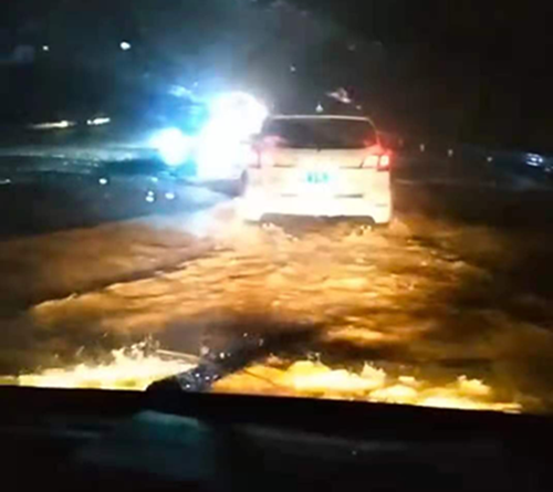 晚6點,突接中原銀行湯陰亞新ATM機,被淹告急,為了挽救人民財產(chǎn),中原銀行隊員方志林、白亮、魏鑫冒著風險驅(qū)車前往,任務(wù)就是為了把淹沒在洪水中ATM里面的錢拉回來。前往的路上,無路可走,到處汪洋,司機白亮克服困難,涉水而行,晚上8點,趕到湯陰,走至湯陰火車站附近往南處的時候,路截斷了,水深到胸部,但距離ATM還有兩公里的路程,為了完成任務(wù),為了挽救人民財產(chǎn),請示領(lǐng)導后,決定涉水走路前進。方志林、魏鑫舉著槍和銀行人員手拉手冒著雨倘著水艱難的走到了ATM點,往返四公里,用將近兩個小時的時間完成了任務(wù)。因為雨天路上情況變化太大,為了給在湯陰的車探明路況,晚上九點,大隊長李艷軍和劉靜雨開車前往湯陰,尋找可行路線,歷經(jīng)重重困難,于10點左右兩車匯合,由于提前探明路況,返程時沒有遇到很大困難,返回到中原銀行時,是晚上11點半左右。