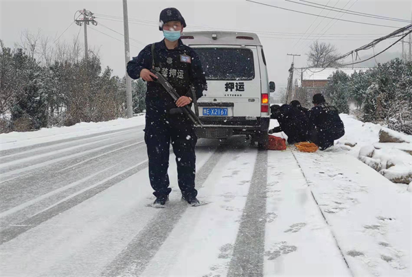 清晨,為確保款箱準(zhǔn)時(shí)送到各營業(yè)網(wǎng)點(diǎn),他們冒雪按時(shí)出發(fā)。滿天的飛雪,昏暗街區(qū),濕滑的道路,讓押運(yùn)車輛行進(jìn)艱難,各車組按照雨雪天工作預(yù)案要求認(rèn)真執(zhí)行勤務(wù)。時(shí)值中午,雪越下越大,東姚、原康、桂林、橫水線路路面已經(jīng)積雪嚴(yán)重。橫水線路在行駛至采桑路段時(shí),車長李增華看到積雪的路面,果斷將車輛停下,按照預(yù)案加裝防滑鏈。車組成員在他的指揮下,快速安裝好輪胎防滑鏈繼續(xù)前行。東姚線路和桂林線路也在押運(yùn)途中適時(shí)將車輛加裝好防滑鏈,確保車輛安全運(yùn)行。