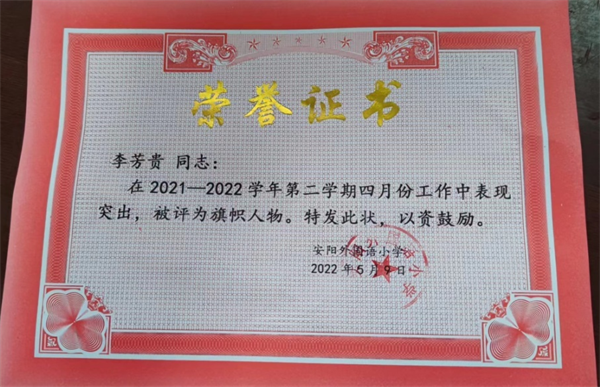 在疫情防控常態(tài)化背景下,校門管控是校園疫情防控的第一道防線,是疫情防控工作的重點(diǎn)部位,校園保安在校門守衛(wèi)持久戰(zhàn)中扮演著舉足輕重的角色。今年4月份以來(lái),安陽(yáng)市內(nèi)疫情多點(diǎn)散發(fā),為確保校園的安全穩(wěn)定,李芳貴堅(jiān)守崗位,在校園內(nèi)開展全方位的消毒防疫和隱患排查工作,定期檢查水電消防,做到發(fā)現(xiàn)隱患及時(shí)處置,確保校園疫情防控及安全工作做實(shí)做好,承擔(dān)起守護(hù)校園疫情防控第一道防線的重大責(zé)任,在四月份總結(jié)評(píng)比中被安陽(yáng)外國(guó)語(yǔ)小學(xué)評(píng)為旗幟人物。