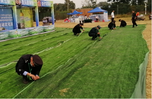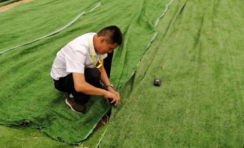 被抽調(diào)出的執(zhí)勤人員分工合作,有的負(fù)責(zé)鋪平草坪地毯,有的負(fù)責(zé)將地毯用訂書釘釘在一起,大家干得熱火朝天。經(jīng)過(guò)2個(gè)多小時(shí)奮戰(zhàn),13500平方米凌亂的草坪地毯再次整整齊齊鋪在了主會(huì)場(chǎng)??蛻艨吹胶?,直夸我們的保安員真能干。