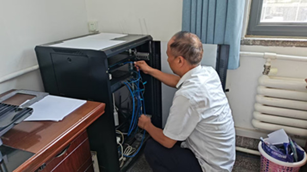 去年夏天,公司網(wǎng)絡系統(tǒng)突然全面癱瘓,鄧勝軍把剛打好的午飯放到辦公室,拎起工具包就沖向二樓機房。排查、跳線、重啟、驗證,他像“人形掃描儀”一樣在1至5樓來回穿梭。2小時后,數(shù)據(jù)恢復,系統(tǒng)滿血復活,他卻倚著墻累得不想說話不想動彈。同事們都勸他,勞逸結合,注意身體,他卻說:“故障不過夜,網(wǎng)絡不斷線?!?