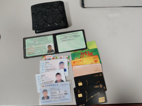 10月4日凌晨1點多,技防分公司夜間巡查人員在中國銀行永明路支行自助ATM機(jī)巡查時,發(fā)現(xiàn)一個錢包,經(jīng)過檢查,錢包內(nèi)有身份證、駕駛證、港澳通行證及多張銀行卡等,巡查人員立即上報中國銀行值班人員,然后將錢包交到監(jiān)控中心保管。