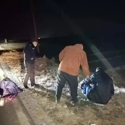 農(nóng)村野外溫度低至零下7度,天寒地凍為防止意外發(fā)生,張懷軍、趙伯海兩人上前將他扶起來。經(jīng)過20分鐘左右的詢問,他們才問明白該男子殷都區(qū)三家莊村民趙某根,晚上和朋友喝完酒后獨自一人騎電動車回家,到村西蘋果園附近由于天黑路不平摔倒。本想自己用力站起來,但因喝酒太多,大腦已經(jīng)不清醒,還是躺在路邊。