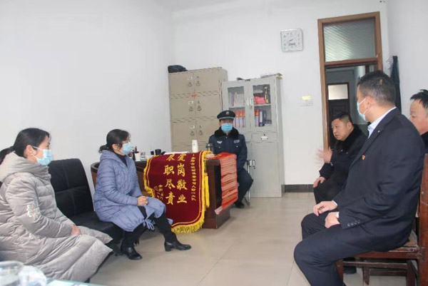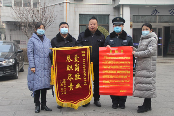 2021年1月22日上午,公司大院迎來(lái)兩位客人,文峰區(qū)東門(mén)小學(xué)校領(lǐng)導(dǎo),她們專(zhuān)程趕到公司送錦旗和表?yè)P(yáng)信,感謝人防一大隊(duì)保安員張躍洪兢兢業(yè)業(yè)為東門(mén)小學(xué)服務(wù),確保師生安全。