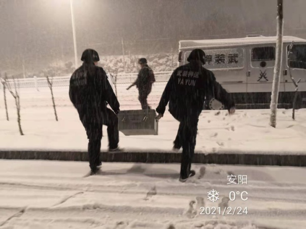 聯(lián)社、農(nóng)行中隊(duì)由于網(wǎng)點(diǎn)地處鄉(xiāng)下,再加上雨雪越下越大,山村道路濕滑,押運(yùn)車車速明顯減緩,導(dǎo)致押運(yùn)車到銀行網(wǎng)點(diǎn)接款時(shí)比原定時(shí)間推遲,聯(lián)社原康、任村線路收車回來已到晚上9時(shí)左右。雪上加霜的是聯(lián)社東姚線路車組押運(yùn)車在晚上9時(shí)30分左右,行駛至采桑南景色村時(shí)車輛防滑鏈斷裂,車長段曉騰立即向大隊(duì)進(jìn)行了匯報(bào),大隊(duì)長楊海波立即安排應(yīng)急車組前去救援。因天黑、路滑、雪疾,聯(lián)社中隊(duì)最后一輛押運(yùn)車安全歸隊(duì)時(shí)已是晚上11時(shí)45分,農(nóng)行中隊(duì)最后一輛車輛收車回來已到半夜12點(diǎn)24分,至此,大隊(duì)所有車輛安全返回,完成當(dāng)日的押運(yùn)任務(wù)。