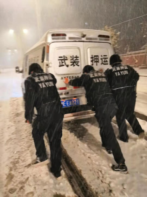 2月24日傍晚至夜間,守押七大隊(duì)各押運(yùn)車組奮力迎戰(zhàn)暴風(fēng)雪,全力確保押運(yùn)安全。