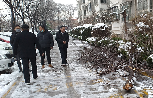 當(dāng)日一大早,申春林就帶領(lǐng)物業(yè)公司辦公室、應(yīng)急辦的人員深入到各項(xiàng)目單位,查看雪后災(zāi)情。在致中苑小區(qū)、電業(yè)局頤欣園小區(qū),申春林看到有樹枝被雪壓斷,他指出要及時(shí)查清受損情況,清理積雪現(xiàn)場(chǎng),確保居民正常出行。在蔬菜基地,有兩個(gè)大棚遭被雪壓塌陷,有不同程度損壞,但均無(wú)人員傷亡事故。目前鼎誠(chéng)物業(yè)員工正在積極修復(fù)大棚,減少損失。