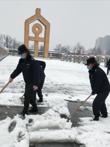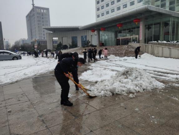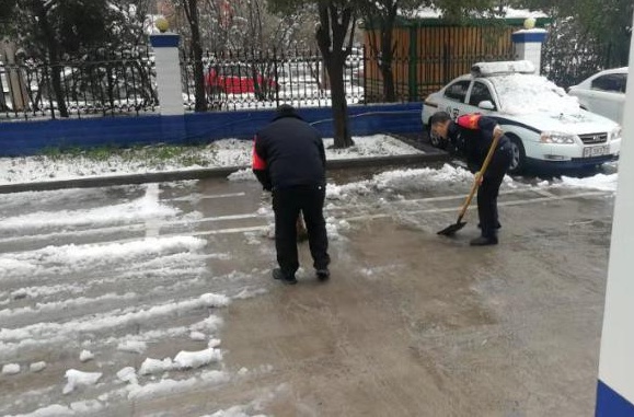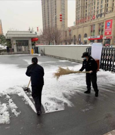 2月24日18時許,新年的第一場雪如期而來,飄落的雪花給特保大隊派駐崗點院內(nèi)道路上鋪上了一層厚厚的積雪,為了消除安全隱患,確??蛻魡挝活I(lǐng)導(dǎo)與工作人員的出行安全,特保大隊派駐各客戶單位隊員迅速行動起來,清掃積雪。隊員們周到的服務(wù)受到客戶好評。