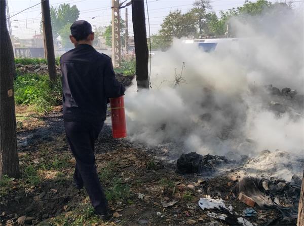5月5日下午2點(diǎn)30分,人防四大隊(duì)電廠路街道巡防隊(duì)隊(duì)員高麗慧、袁利民在鐵路沿線巡邏,發(fā)現(xiàn)梁邵村附近的鐵路邊濃煙滾滾,有刺鼻的氣味,兩人立即開車前往現(xiàn)場(chǎng)了解情況。到達(dá)現(xiàn)場(chǎng)后,他們發(fā)現(xiàn)鐵路邊的荒草樹等雜物正在燃燒,現(xiàn)場(chǎng)火勢(shì)不太大,沒有人員受傷。他們隨即與鐵路工作人員聯(lián)系,并立即利用鐵鍬、滅火器等工具開展滅火行動(dòng),經(jīng)過他們和鐵路員工的共同努力,火勢(shì)已經(jīng)基本得到控制,火情基本被消滅,他們的行為受到了轄區(qū)領(lǐng)導(dǎo)的一致表揚(yáng)。