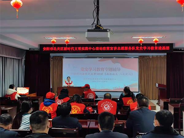 為引導全區(qū)黨員干部從百年黨史中感悟思想偉力,汲取奮進力量,11月29日上午,公司參加由北關(guān)區(qū)文明辦在安陽市地震局五樓召開《安陽市北關(guān)區(qū)新時代文明實踐中心理論政策宣講志愿服務隊黨史學習教育進基層活動》,北關(guān)區(qū)文明辦副主任齊書蘭進行宣講。