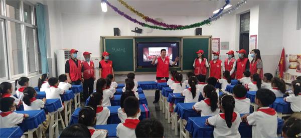 志愿者們首先來到了盤庚小學(xué)二年級(jí)五班,為孩子們送上了精神上的饕餮大餐。志愿者們?yōu)閷W(xué)生們帶來了《焦裕祿》《紅旗渠精神》《紅船》等一段段紅色故事。志愿者們講得精彩,孩子們聽得認(rèn)真。偌大的教室里學(xué)生聚精會(huì)神的聆聽。通過此次宣講,紅色精神在孩子們心中生根發(fā)芽,紅色血脈在孩子們身上流淌;紅色基因在孩子們腦海萌發(fā)茂盛。