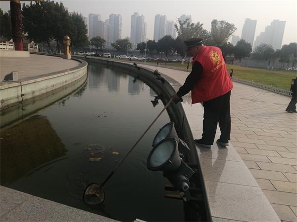 活動中,參加人員身著志愿者服裝,個個精神飽滿,情緒高漲。大家分工明確,有的抹椅子,有的清理水池中的漂浮物,有的清理地面上的垃圾,不怕臟,不怕累,不叫苦,清理環(huán)境衛(wèi)生,助推文明城市創(chuàng)建。