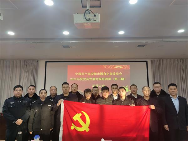 為嚴(yán)格黨員發(fā)展的政治標(biāo)準(zhǔn),全面加強(qiáng)發(fā)展對(duì)象的教育培養(yǎng),進(jìn)一步提升企業(yè)黨建質(zhì)量,落實(shí)《中國(guó)共產(chǎn)黨發(fā)展黨員工作細(xì)則》有關(guān)要求,11月30日至12月2日,中共安陽市國(guó)有企業(yè)委員會(huì)舉辦2021年度黨員發(fā)展對(duì)象培訓(xùn)班(第三期),公司組織15名黨員發(fā)展對(duì)象參加了培訓(xùn)。11月26日上午,公司黨委副書記張錫軍主持召開了黨員發(fā)展對(duì)象集中談話會(huì),會(huì)議要求此次參加培訓(xùn)人員端正入黨動(dòng)機(jī)、嚴(yán)格遵守紀(jì)律、注重自身安全、樹立良好形象,充分發(fā)揮黨員先鋒模范作用,立足崗位多做貢獻(xiàn)。